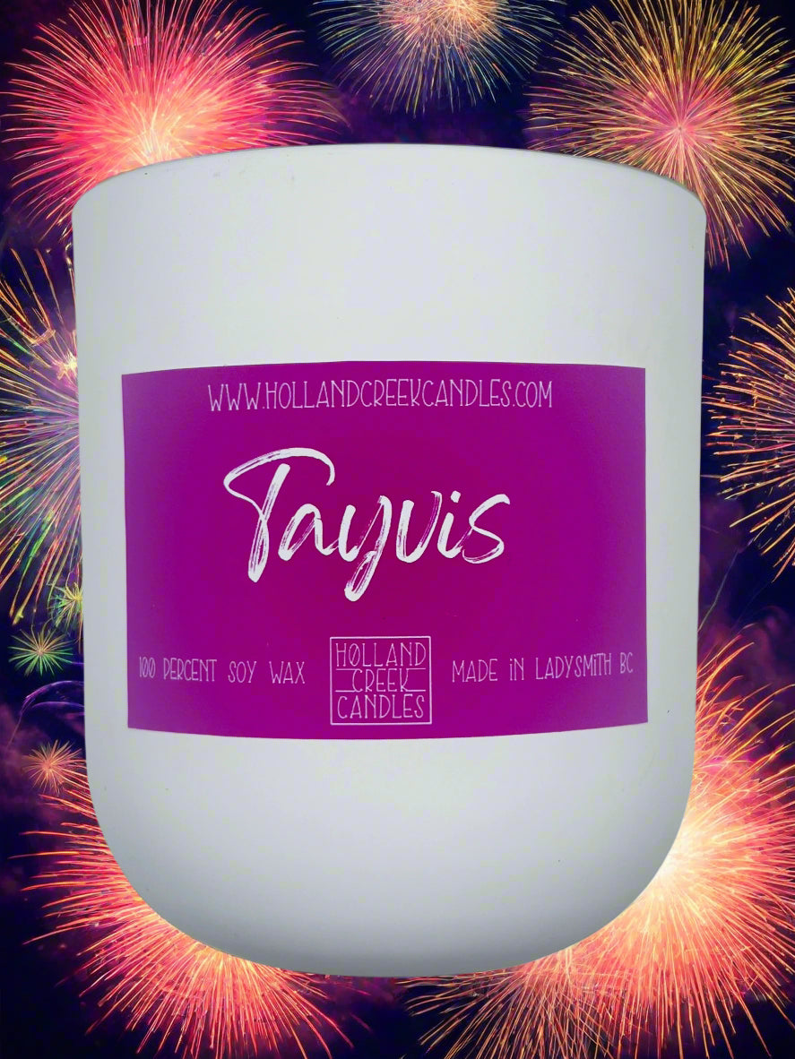 Congratulations on your Engagement Taylor and Travis! This candle is a happy, joyful ode to 'Tayvis'. We wish them God's blessing on their life together.